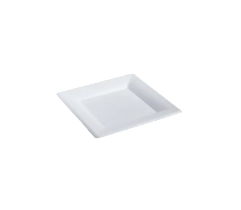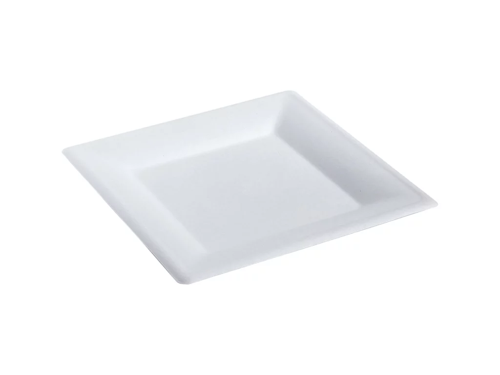 Kwadratowy talerz NATURA 10 cali (ok. 25 cm), wykonany z ekologicznej pulpy roślinnej, idealnie sprawdza się w cateringu, food truckach i gastronomii. Produkt marki KRAM, zapakowany po 50 sztuk.